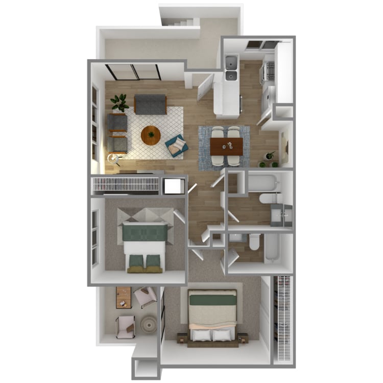 Park Sierra does... not warrant or represent that image renderings on this website are an accurate representation of every floor plan available at the Property. Floor plans may vary unit by unit and by location at the Property. Please contact our Leasing Office to schedule a tour of the Property and the particular unit you are interested in. Listed pricing and special offers only valid for new residents. Pricing and availability subject to change at any time.
